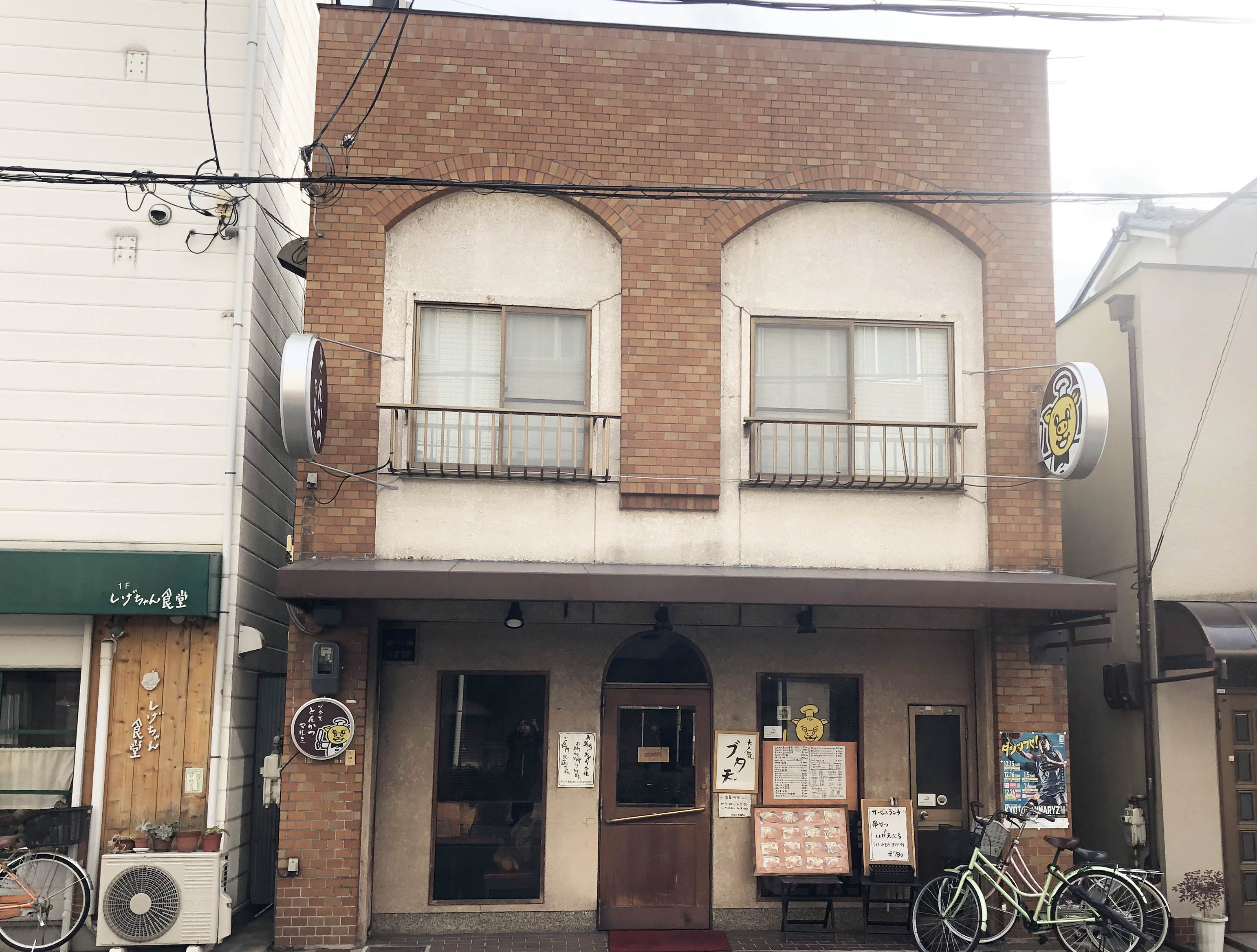 JR「円町駅」から徒歩約10分のところにあるお店。北側には「京都民医連中央病院 西館」があり、東隣にはいずれ当ブログでもREPORTする予定の「しげちゃん食堂」があります。こちらのお店はけっこう昔からあるトンカツ屋さんで、トンカツやブタ天、イカ天などが名物。リーズナブルな価格で地元の方や学生に人気のお店です。では早速、入店してみましょう。
