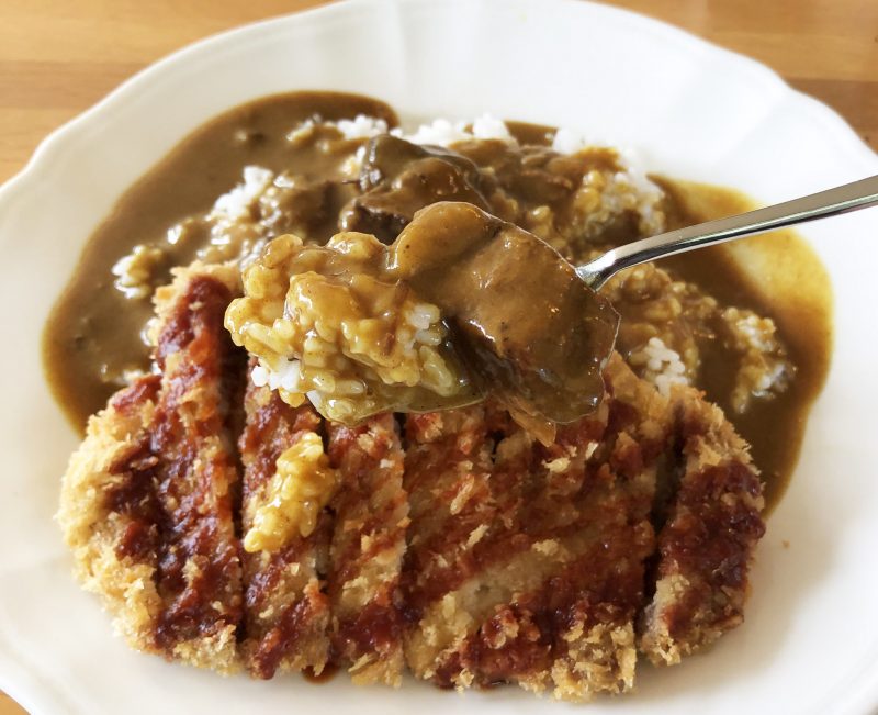 そしてカツカレー。揚げたてサクサクのカツとトマトケチャップベースのソースとの相性は抜群です。そして意外にも、カレーソースともよく合います。むしろ食べ進めるごとに単調な味わいとなってしまうカレーソースをサポートするアクセントにもなっていて、最後まで飽きることなく完食することができました。本格的な欧風カレーを手軽に堪能できるお店です。周辺には平安神宮だけでなく、京都熊野神社や聖護院門跡などの見所も多いエリアですので、観光などのついでにこちらのカレーもぜひお楽しみください。