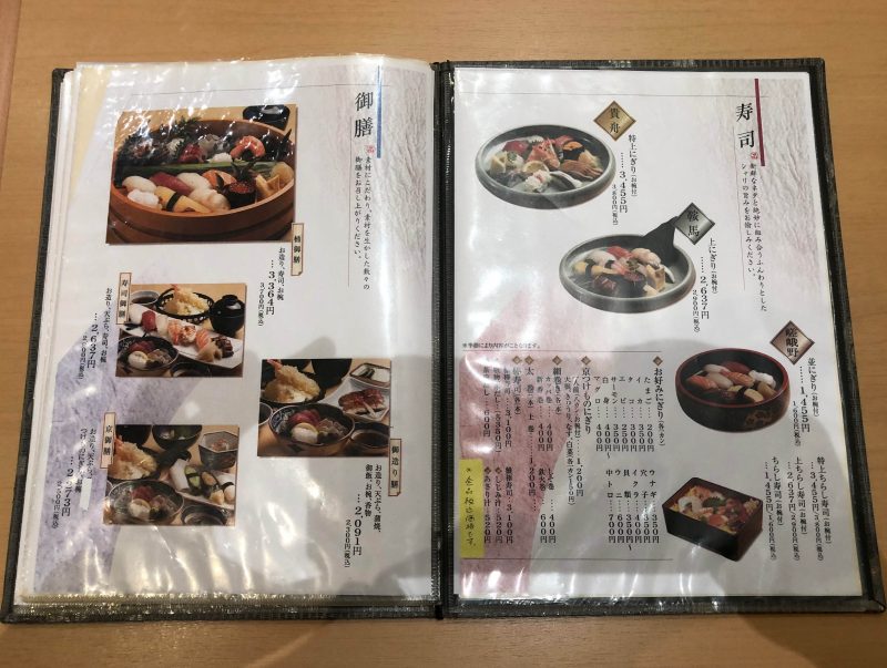 カウンター席や2名テーブル席もあり、新幹線ホーム近くにあるだけあって出張族にも対応していて、お一人様でも気兼ねなく利用できます。寿司店らしい清潔感のある店内は女性客も多く、京都駅で気軽に寿司をいただける雰囲気です。新年2021年(令和3年)1月11日までは時短営業中ながら11時から21時までの通し営業で、いつでもフラッと立ち寄れるのも高ポイントではないでしょうか。ではメニューを確認してみましょう。