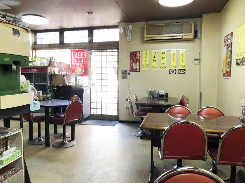 大衆中華店らしい気取らないリーズナブルなメニューがうれしいですね。定食類なども充実していてお一人様でも安心して利用できます。京都市内ではすっかり少なくなった昭和の中華店の1軒で、地元の方からも人気のお店です。しかも11時から夜(通常は21時までですが現在は緊急事態宣言中のため確認していません)までの通し営業なのもありがたい。特にランチは時間を気にせず伺え、重宝するお店ではないでしょうか。では店内へ入ってみましょう。
