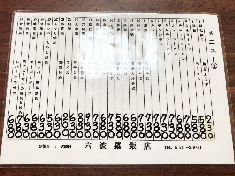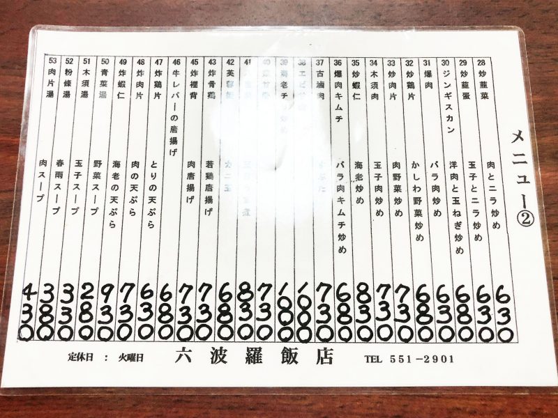 ※詳しくは食べログ「六波羅飯店」を検索してください。