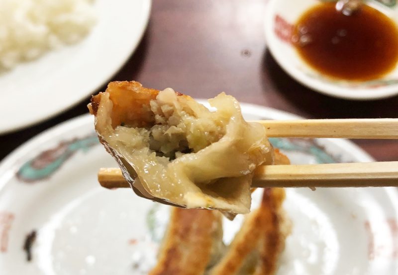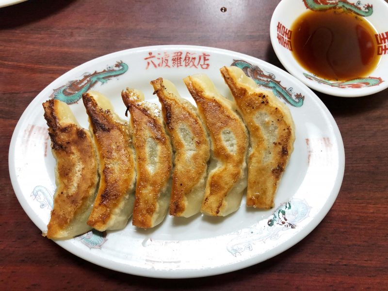 そして「鍋貼餃子(焼きぎょうざ)」です。こちらもちょうどいい塩梅の皮の厚さで、皮のおいしさも楽しむことができる逸品。さらに餡はニンニクがガツン!と効いた、これぞ昭和スタイルの味わいとなっています。やはり焼き餃子にはニンニクです。最近、ニラやショウガがどっさりと入ったノーニンニク餃子もよく見かけますし、それなりにおいしいと思っていましたが、こちらの焼き餃子を食べてみるとやはりニンニクは必要だと痛感します。幸い、今はマスク着用が当たり前となっていますので、翌日が仕事でも抵抗感をあまり感じることなくニンニク入り餃子を楽しめるようになりました。個人的にはこちらでは「鍋貼餃子(焼きぎょうざ)」も食べていただきたいと思います。コロナ渦が収束し安心して京都観光に出かけられるようになられたら、ぜひこちらで昔懐かしい町中華をご賞味いただき、おみやげに「みなとや幽霊子育飴本舗」の幽霊子育飴を購入されて、京都にもおいしい中華とやさしい女性(幽霊ですが)がいることを全国に広めてくださいね。