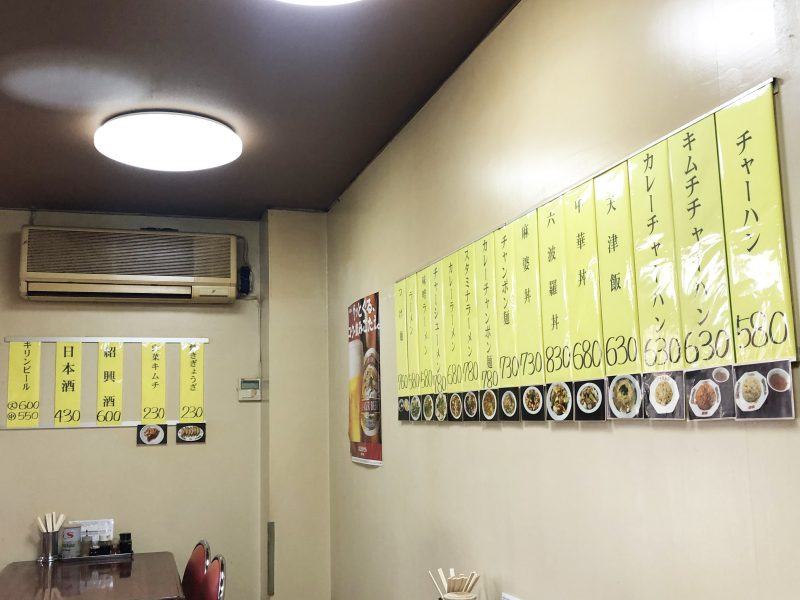 店内も昭和の大衆中華店らしい雰囲気で、お一人様でも気兼ねなく利用できると思います。どこにでもありふれた中華店と見せかけて、実は個人的な感想ながら味は折り紙付き。何を注文しても間違いのないおいしさです。街の名店と呼ぶにふさわしい実力店だと断言できます。一品料理もかなり豊富に用意されていて、昼飲みにも便利です。